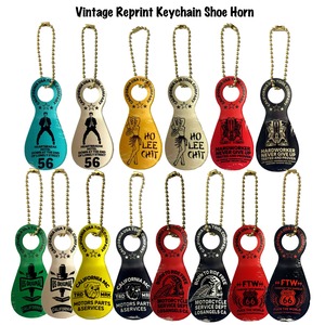 ビンテージなデザインのシューホーンで、普段はキーホルダーとして使用し、携行することでいつでもシューズの踵をつぶすことなくスマートに履くことができるアイテムです。ギフトにもオススメな商品です。