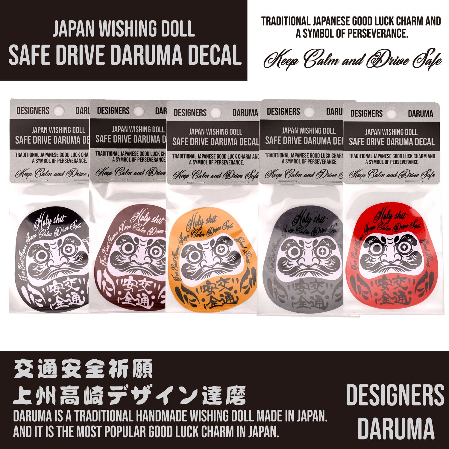交通安全 縁起だるま ダルマ ステッカー ディカール 車 バイク ヘルメット :DMST-001BK