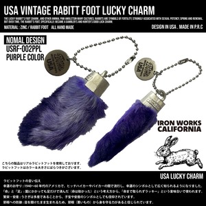 不思議な力が宿るとされる“ウサギの後ろ足(足先)”に留め具を取り付けお守りとして加工したキーチェーンです。アメリカやイギリス、メキシコなどで人気が高く、1940年代 - 1960年代にアメリカのヒッチハイカーやバイカーたちの間で流行したお守りです。