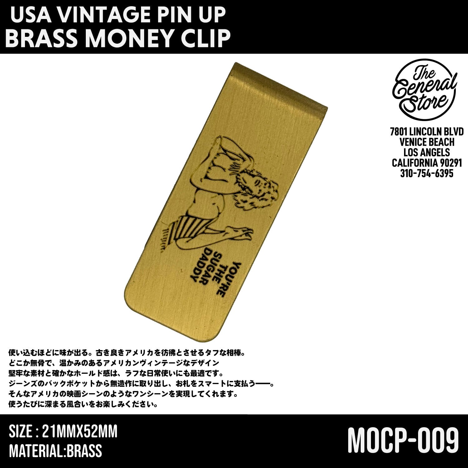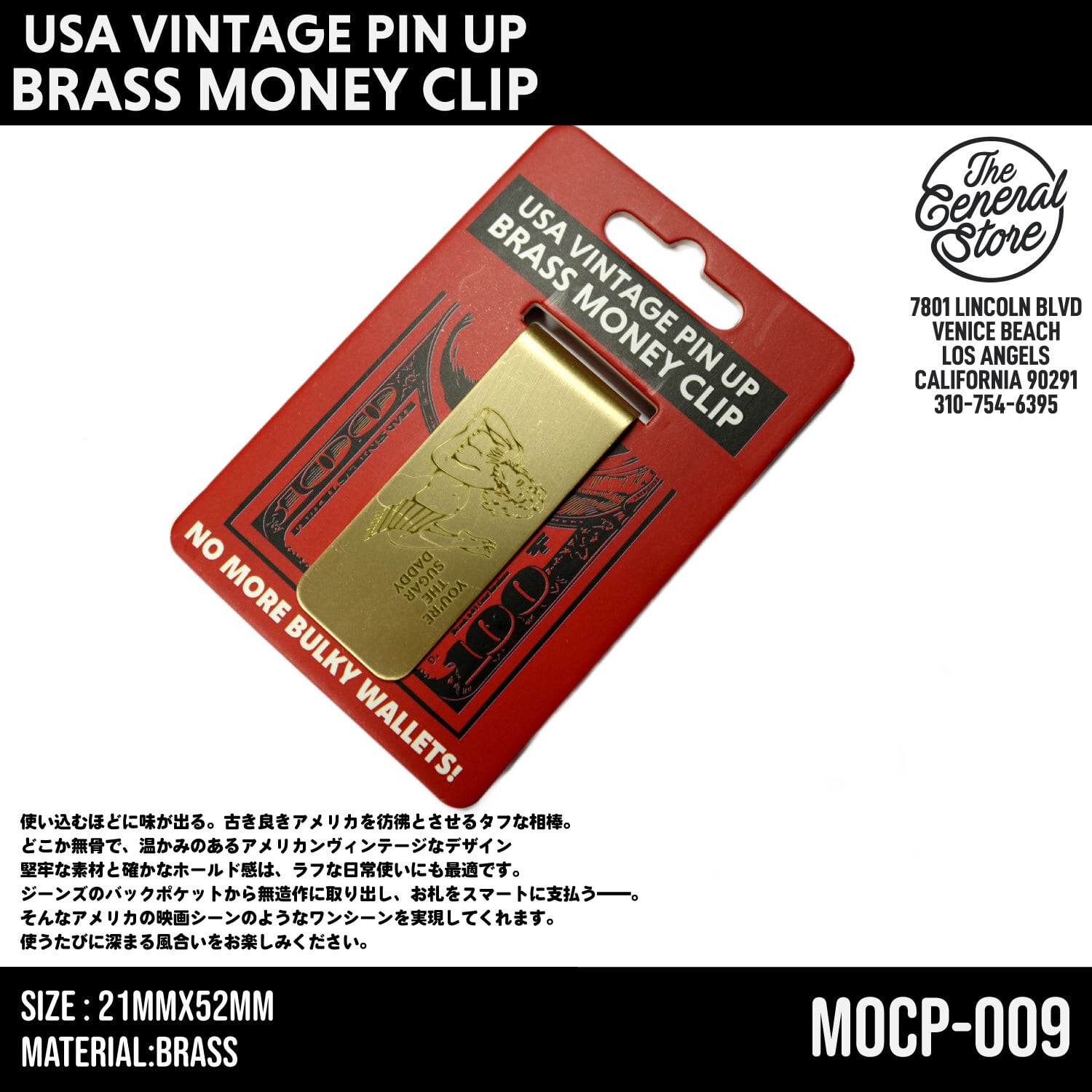 USA 真鍮 セクシー ピンナップガール マネークリップ ミニマリスト ビンテージ レトロ 札入れ 財布 ウォレット : MOCP-009