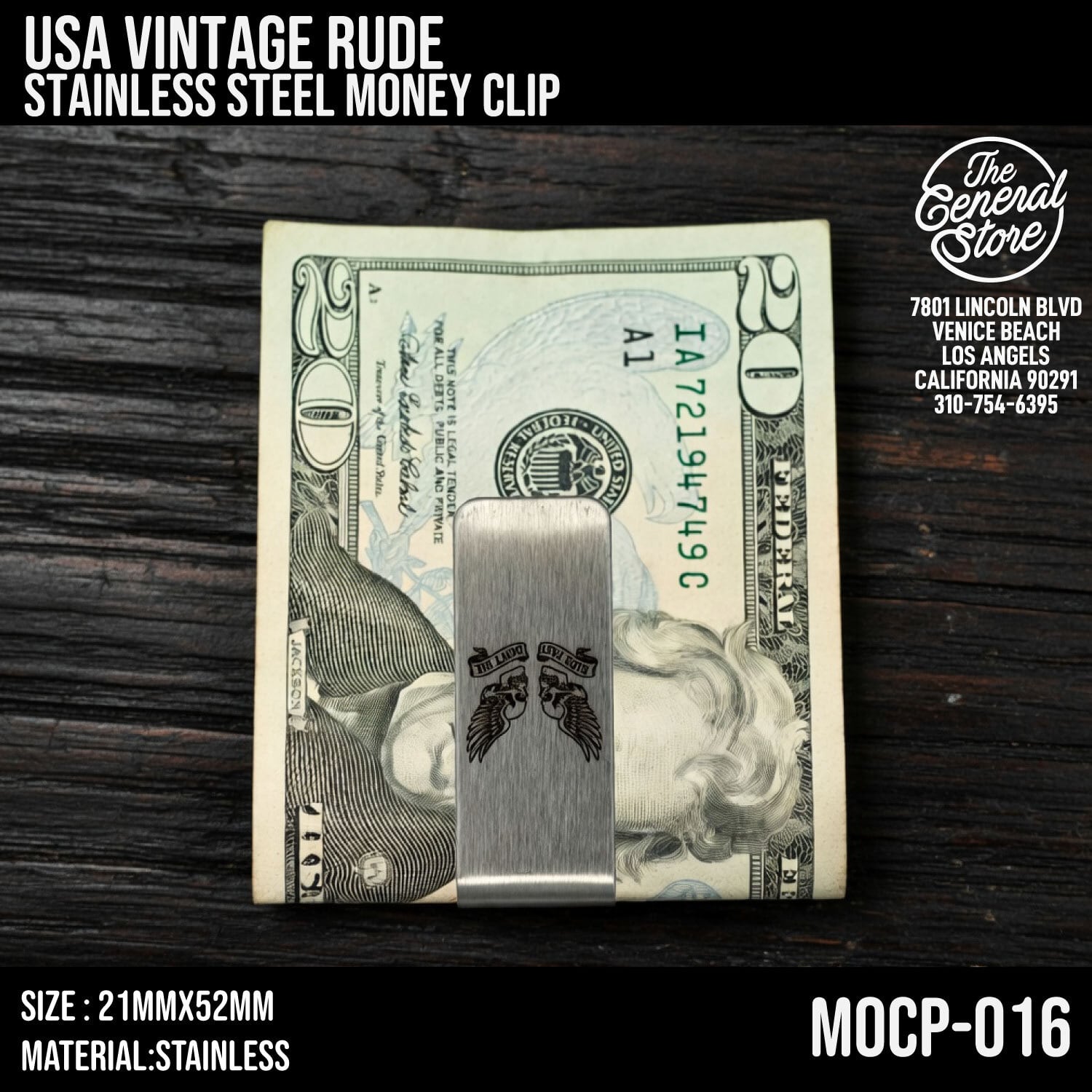 USA バイカー ステンレス マネークリップ ミニマリスト ビンテージ レトロ 札入れ 財布 ウォレット : MOCP-016