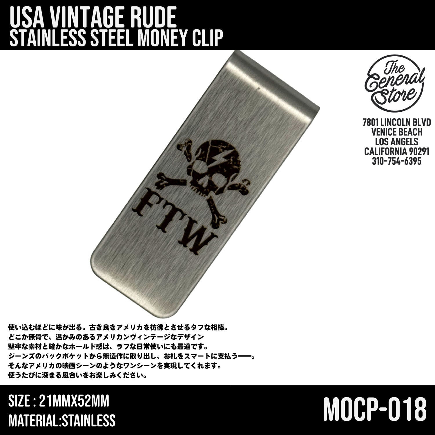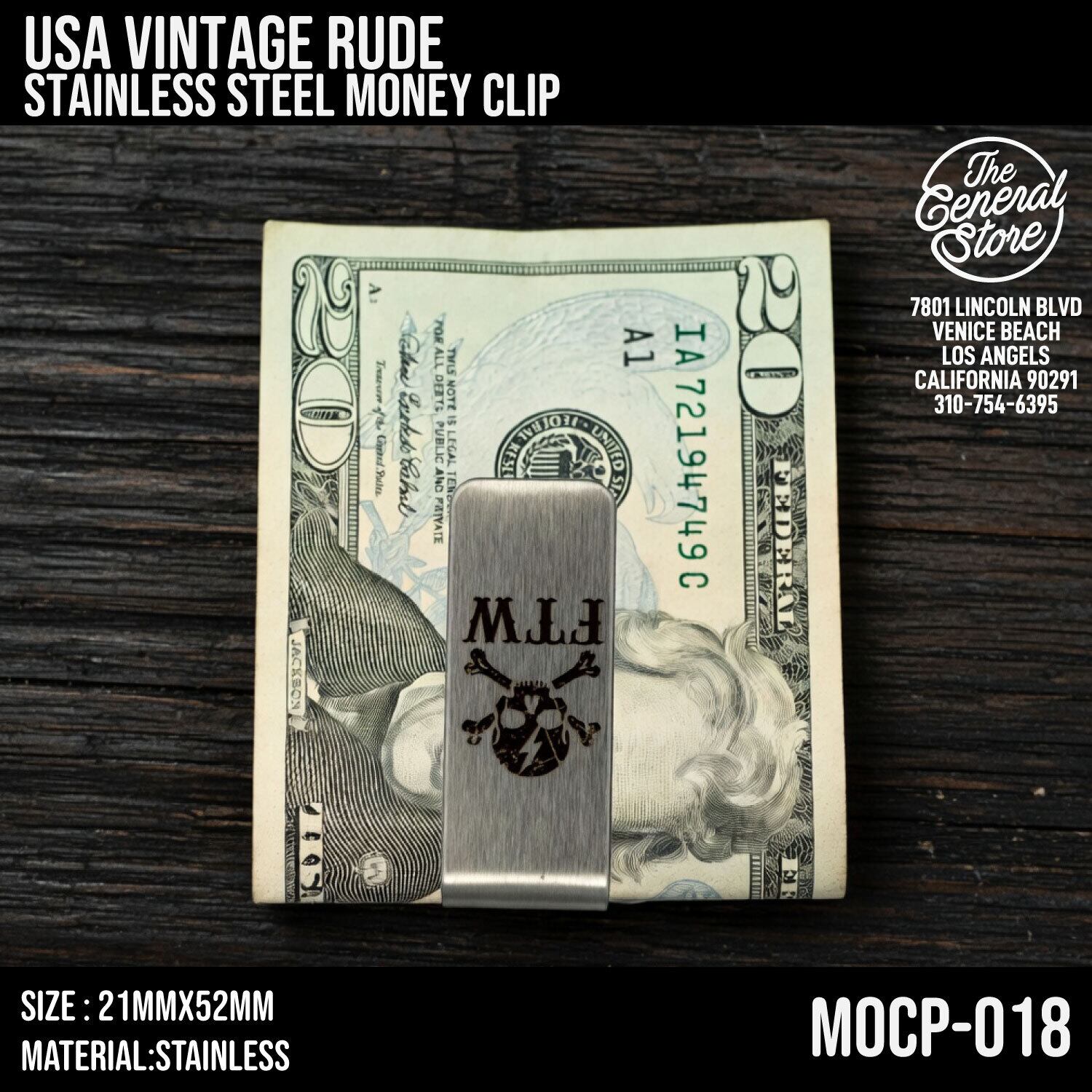 USA バイカー ステンレス マネークリップ ミニマリスト ビンテージ レトロ 札入れ 財布 ウォレット : MOCP-018