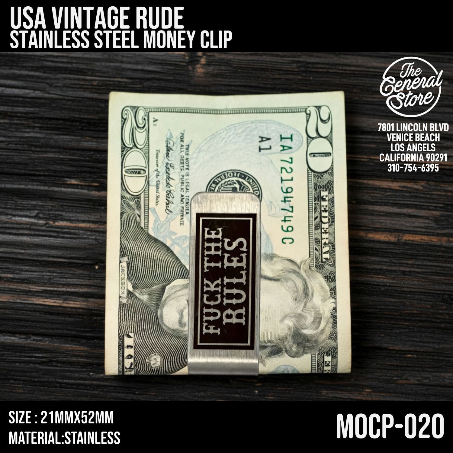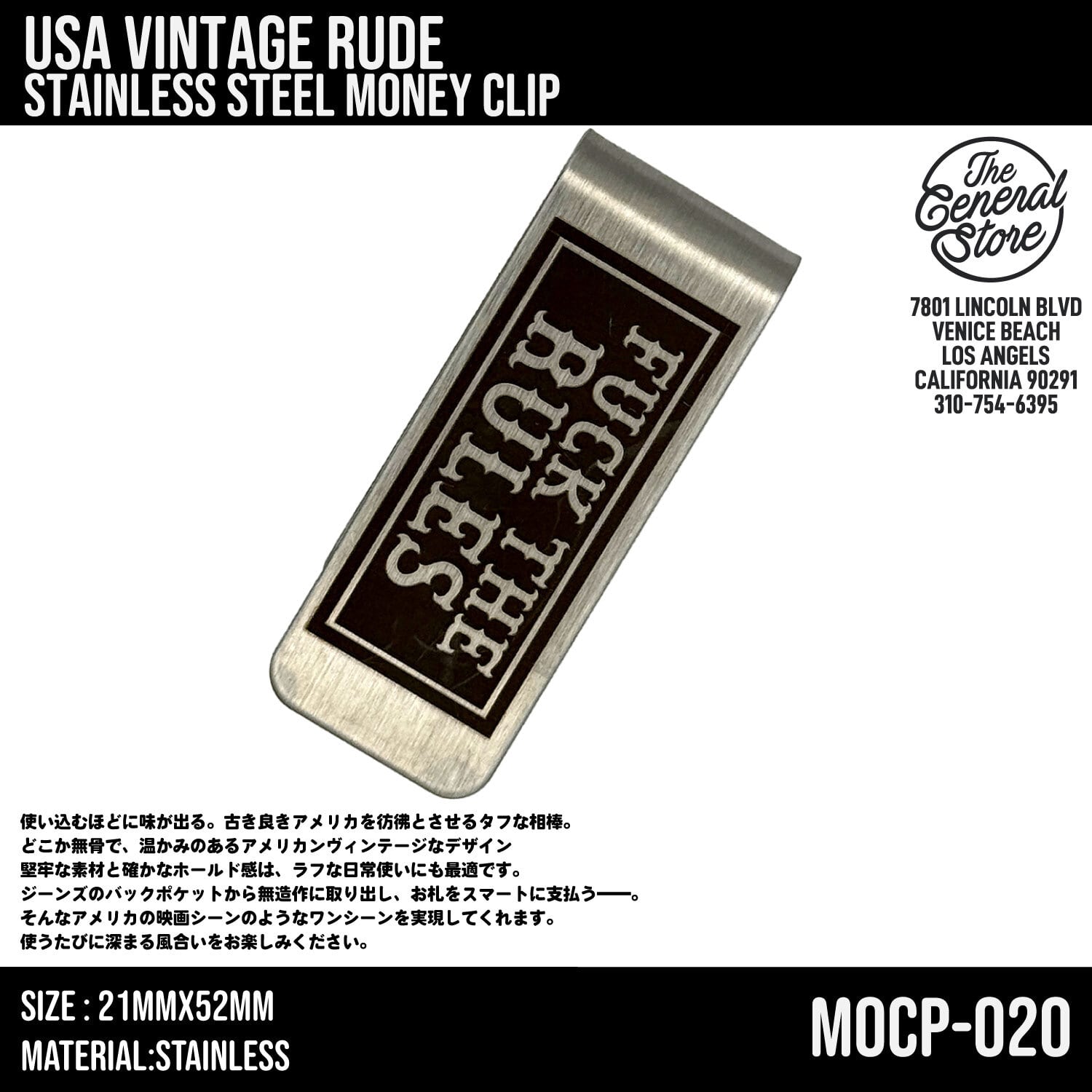 USA バイカー ステンレス マネークリップ ミニマリスト ビンテージ レトロ 札入れ 財布 ウォレット : MOCP-020