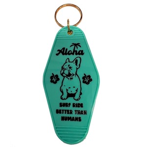 【USA】ハワイ サーフ 犬 フレブル フレンチブルドック ブヒ モーテル キーホルダー ; USMO-035MINT