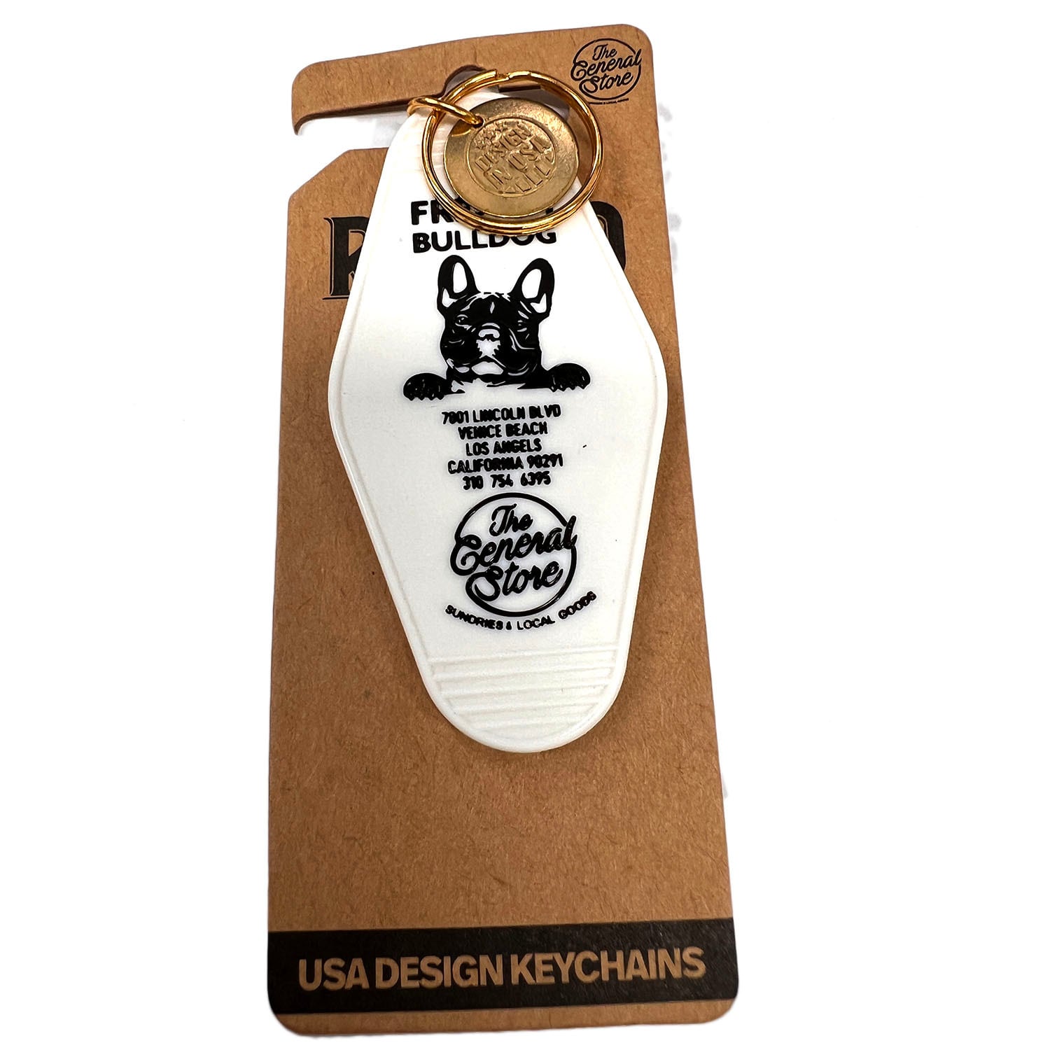 【USA】犬 フレブル フレンチブルドック ブヒ モーテル キーホルダー ; USMO-034WHITE