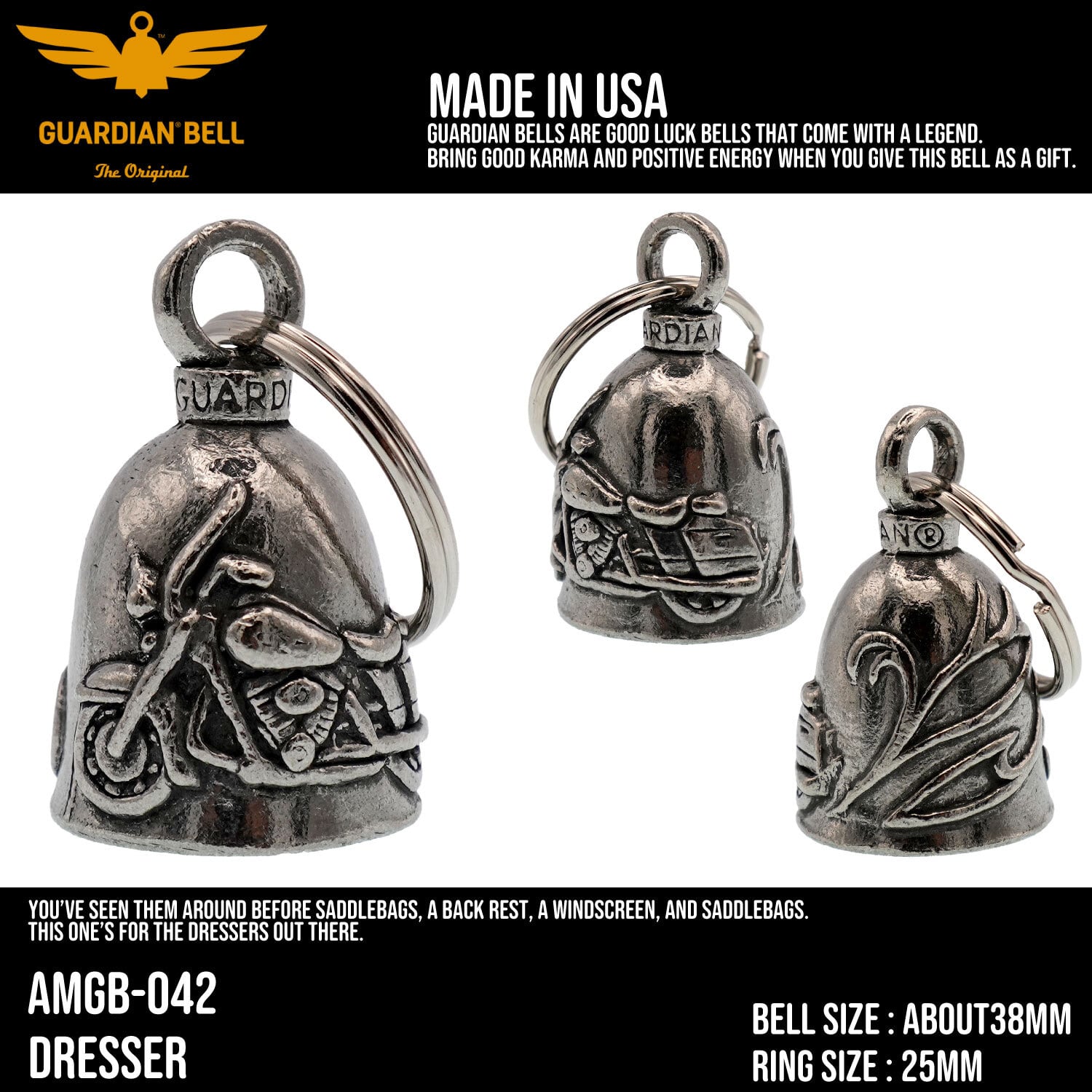 【MADE IN USA】GUARDIAN BELL お守り 魔除け ガーディアンベル バイカー ベル Dresser Motorcycle ; AMGB-042