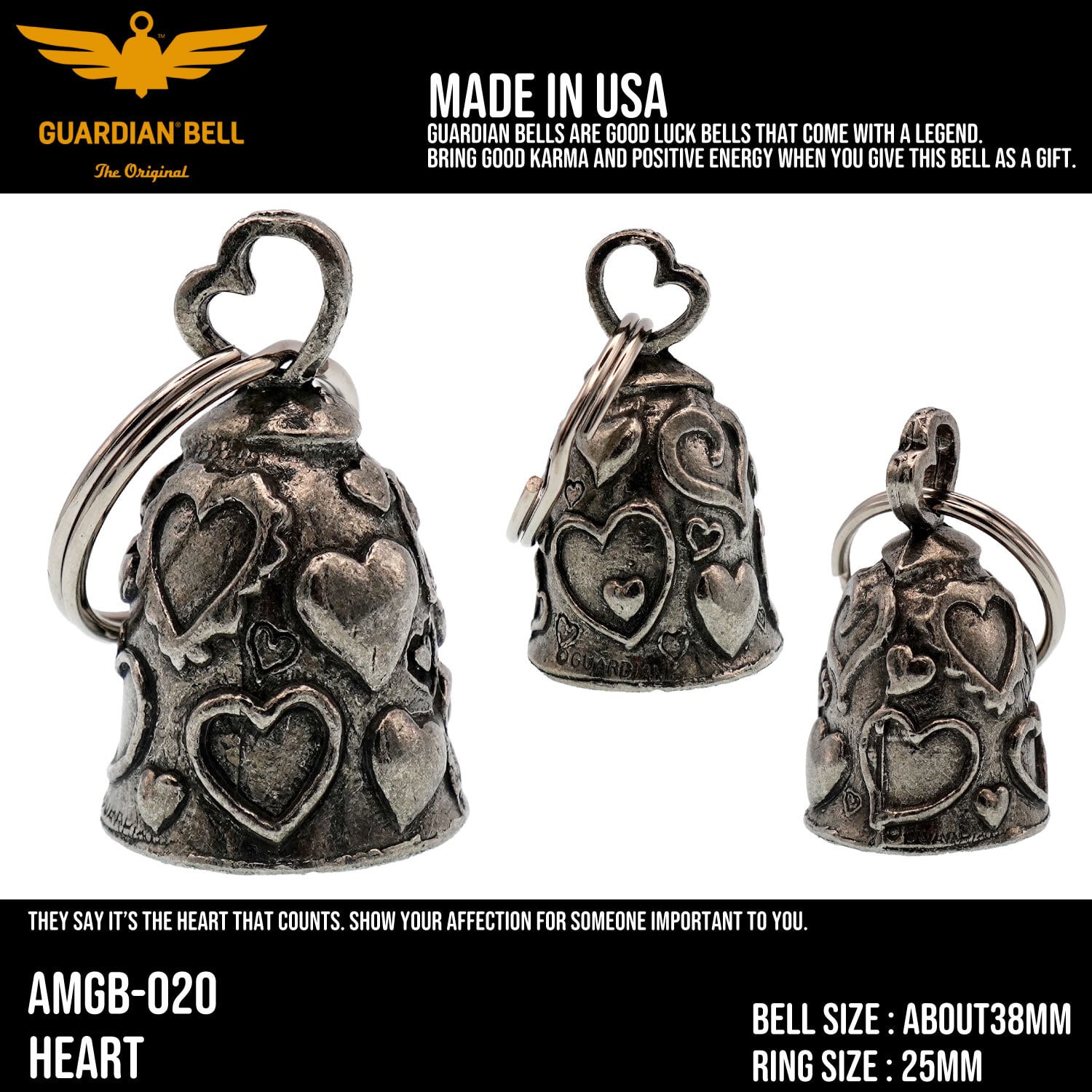【MADE IN USA】GUARDIAN BELL お守り 魔除け ガーディアンベル バイカー ベル Heart ; AMGB-020