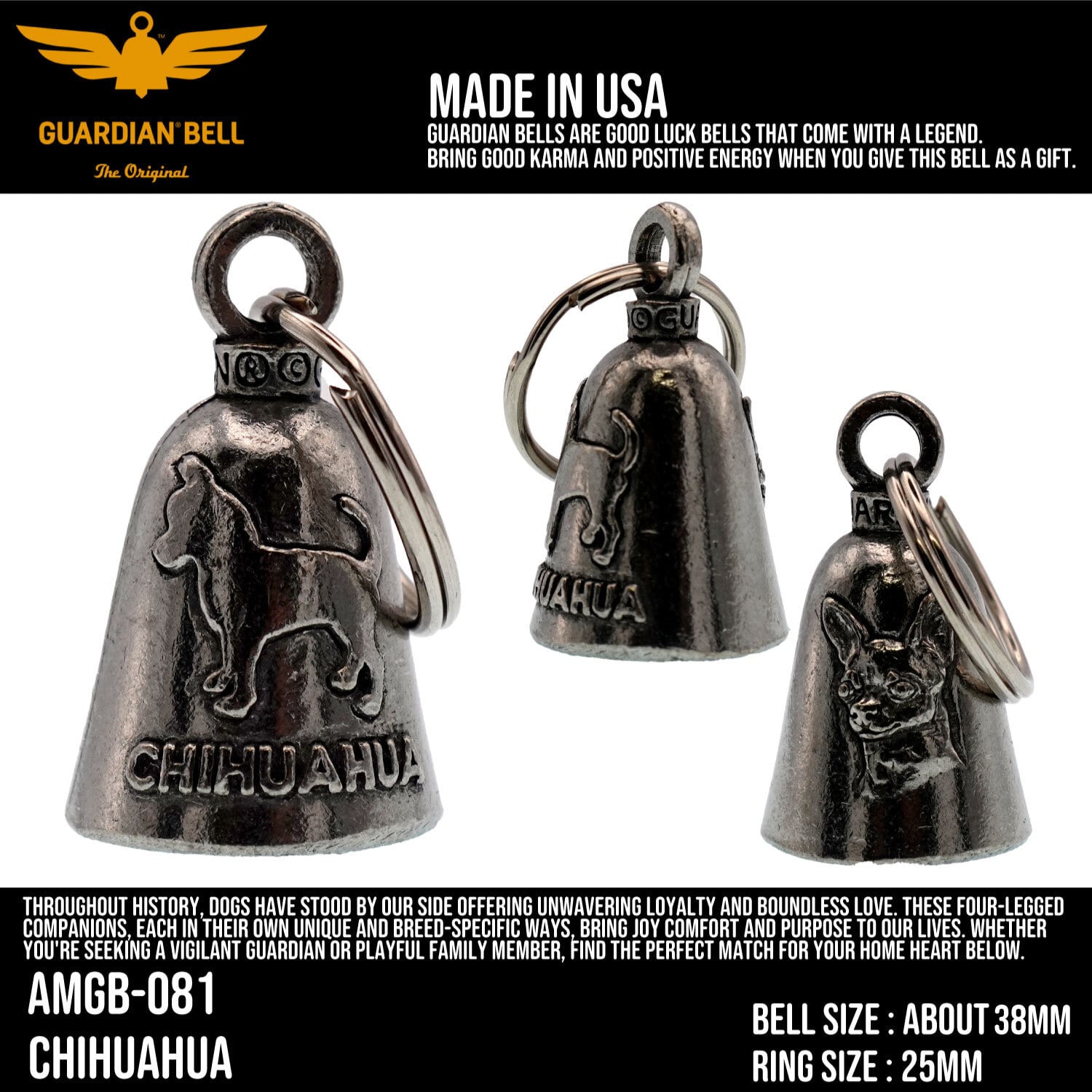 【MADE IN USA】GUARDIAN BELL お守り 魔除け ガーディアンベル バイカー ベル CHIHUAHUA ; AMGB-081