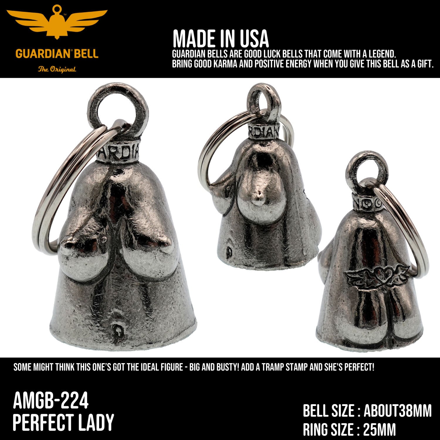 【MADE IN USA】GUARDIAN BELL お守り 魔除け ガーディアンベル バイカー ベル PERFECT LADY 完璧な女性 ; AMGB-224
