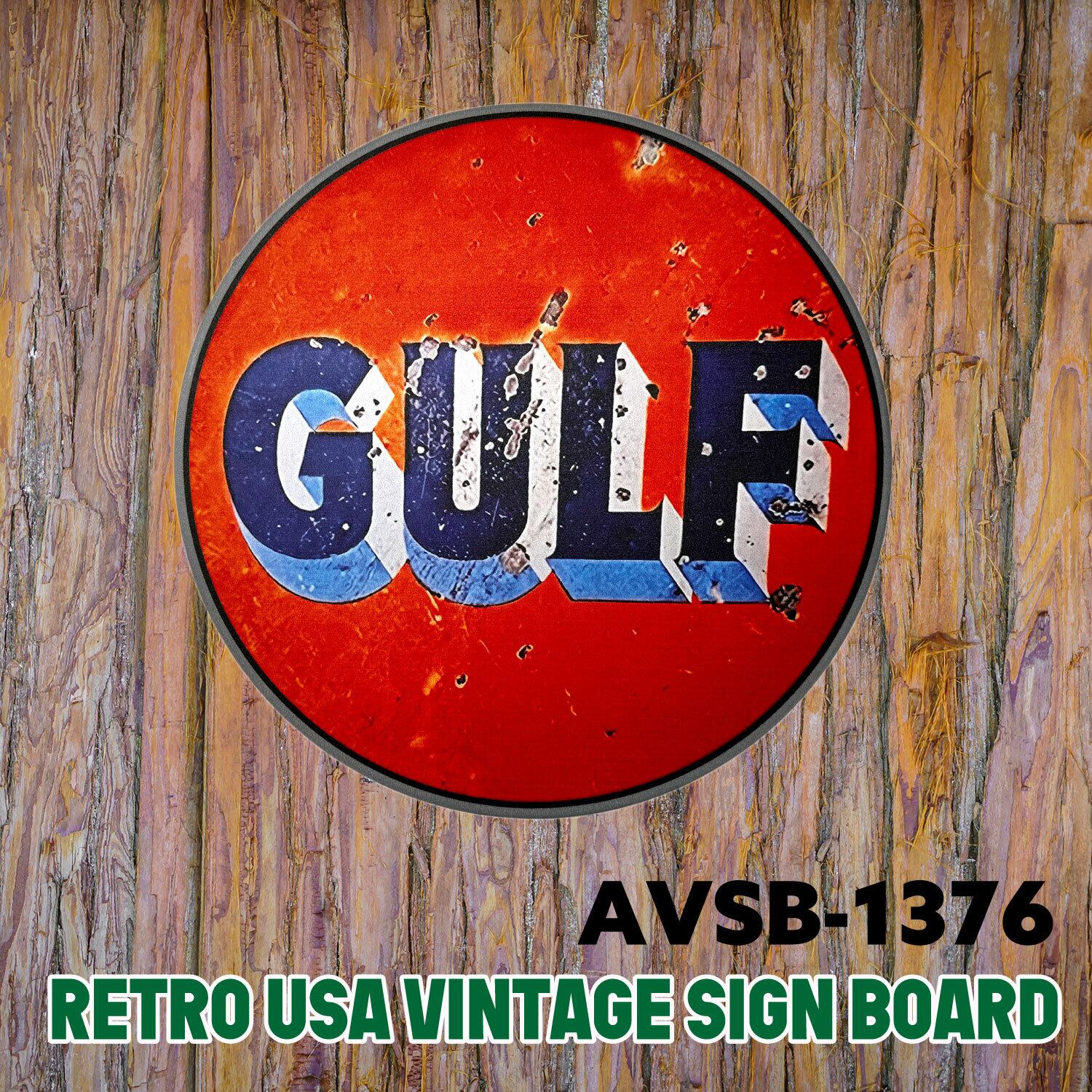 GULF アメリカ オイル 丸 メタル 看板 サインボード ガレージ 雑貨 アメカジ ブリキ;AVSB-1376