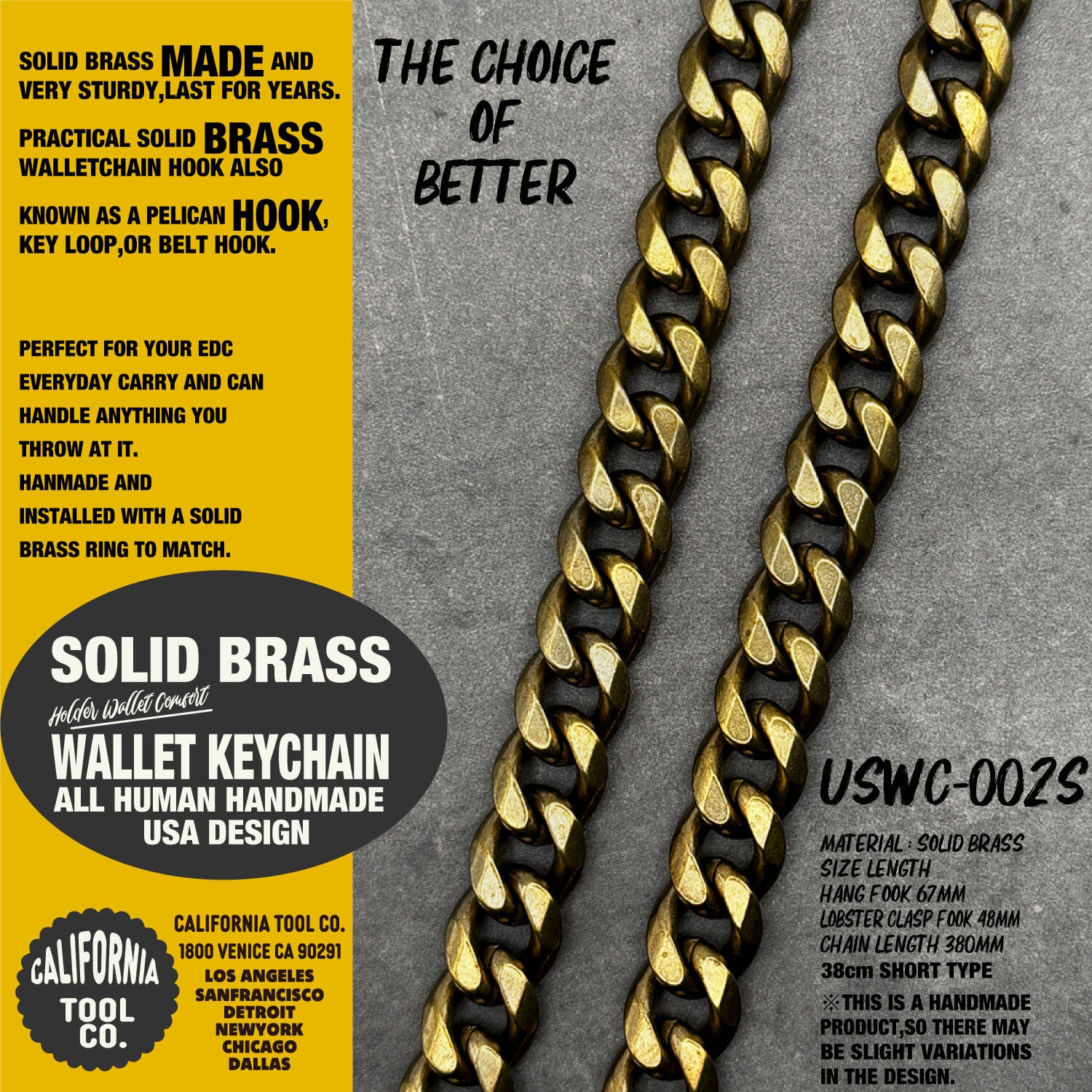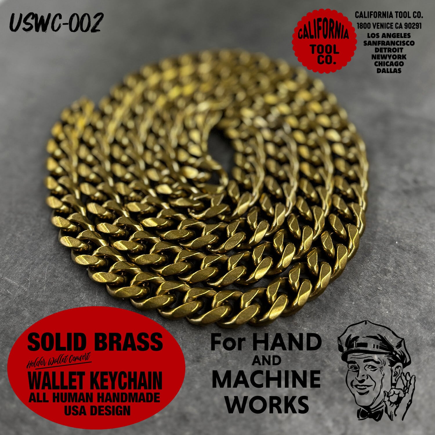 ショートタイプ アメカジ アメリカ USA ビンテージ 真鍮 ブラス フック ウォレットチェーン パーツ バイカー ; USWC-002S