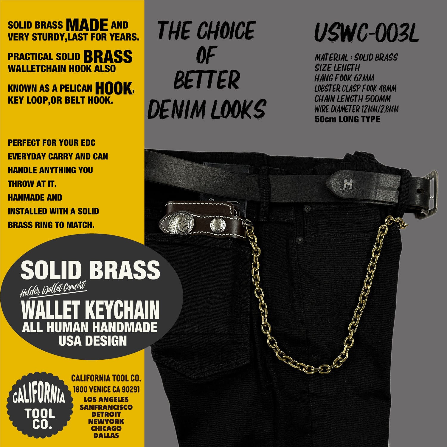 アメカジ アメリカ USA ビンテージ 真鍮 ブラス フック ウォレットチェーン パーツ バイカー ; USWC-003L