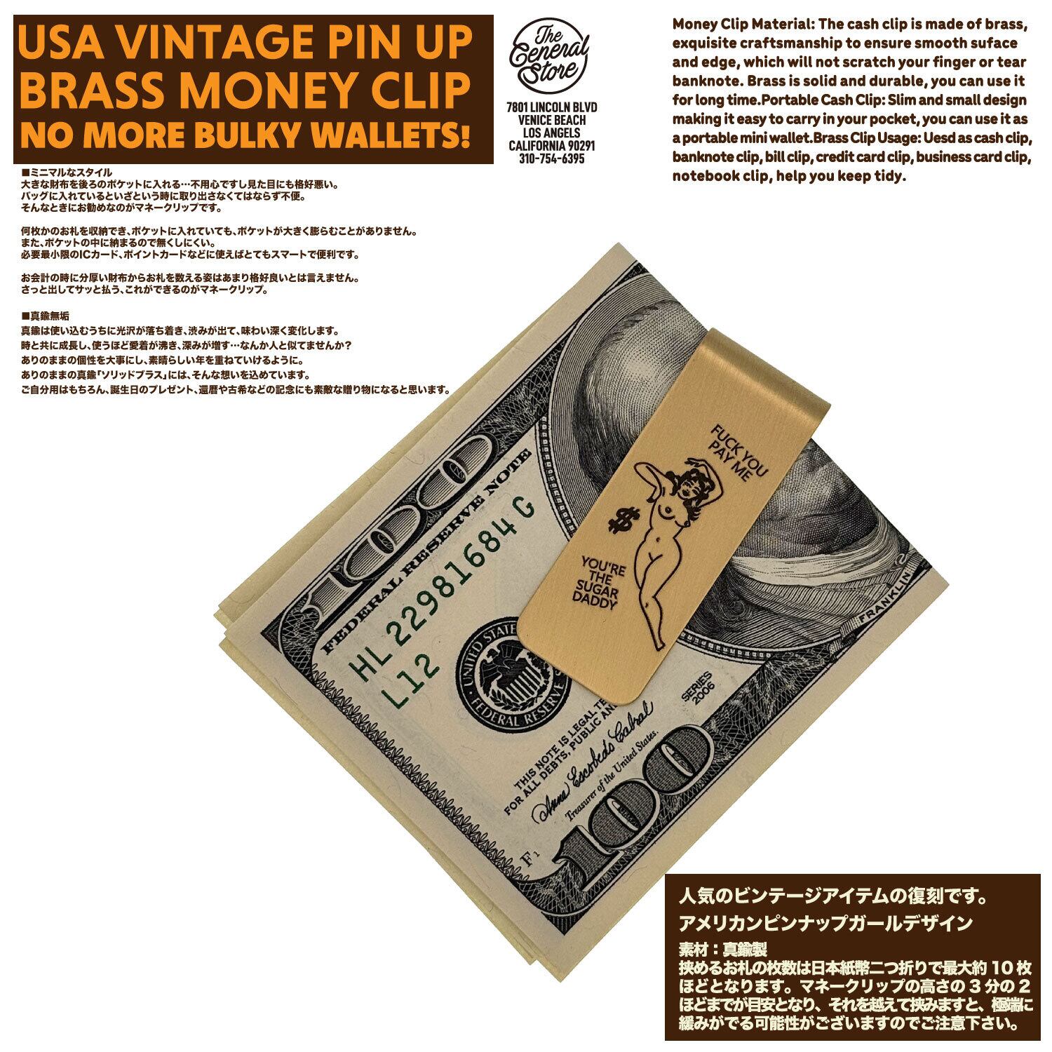 USA 真鍮 セクシー ピンナップガール マネークリップ ミニマリスト ビンテージ レトロ 札入れ 財布 ウォレット : MOCP-001