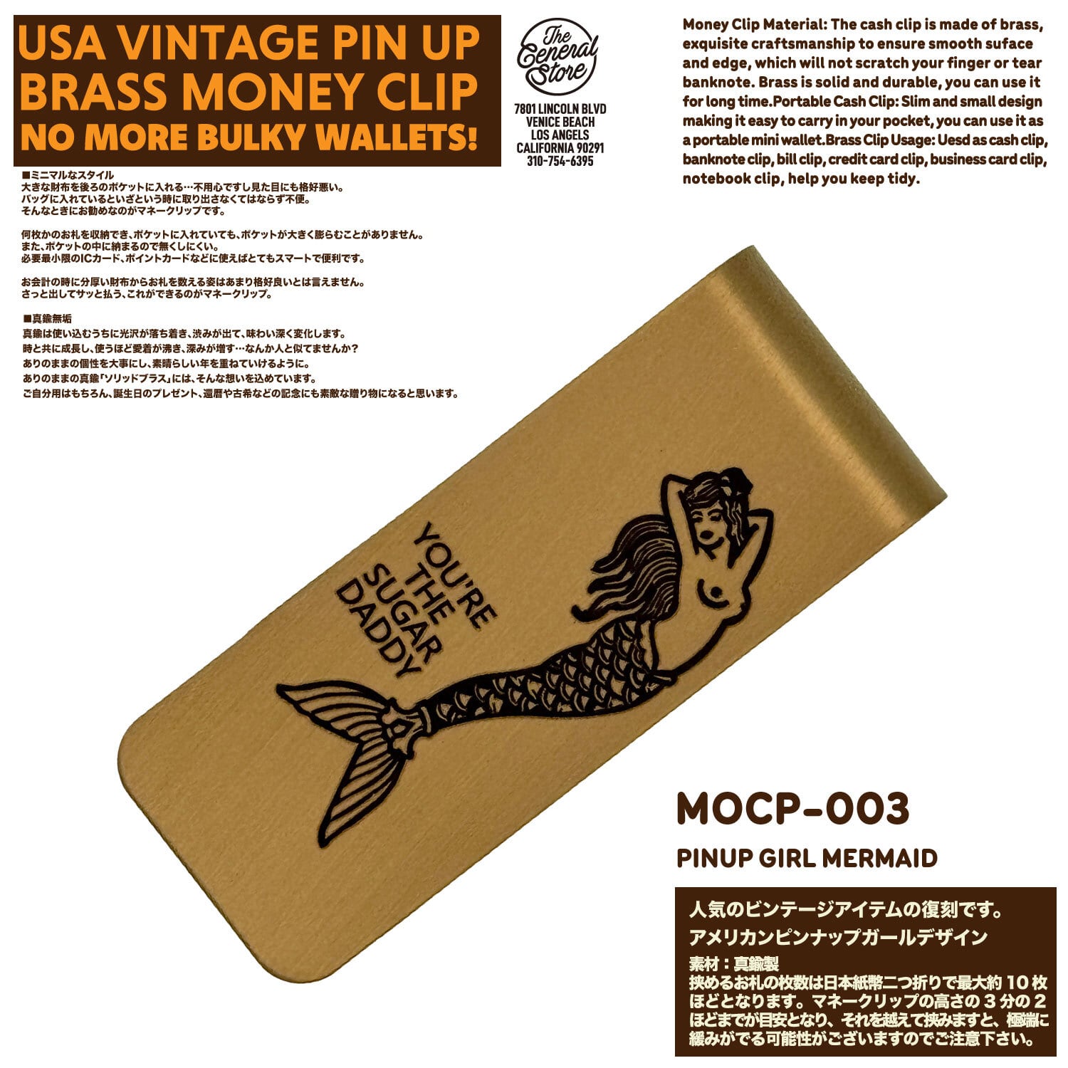 USA 真鍮 セクシー ピンナップガール マネークリップ ミニマリスト ビンテージ レトロ 札入れ 財布 ウォレット : MOCP-003