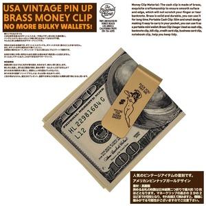 USA 真鍮 セクシー ピンナップガール マネークリップ ミニマリスト ビンテージ レトロ 札入れ 財布 ウォレット : MOCP-004