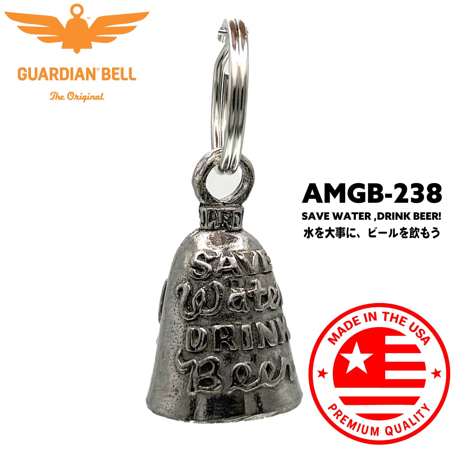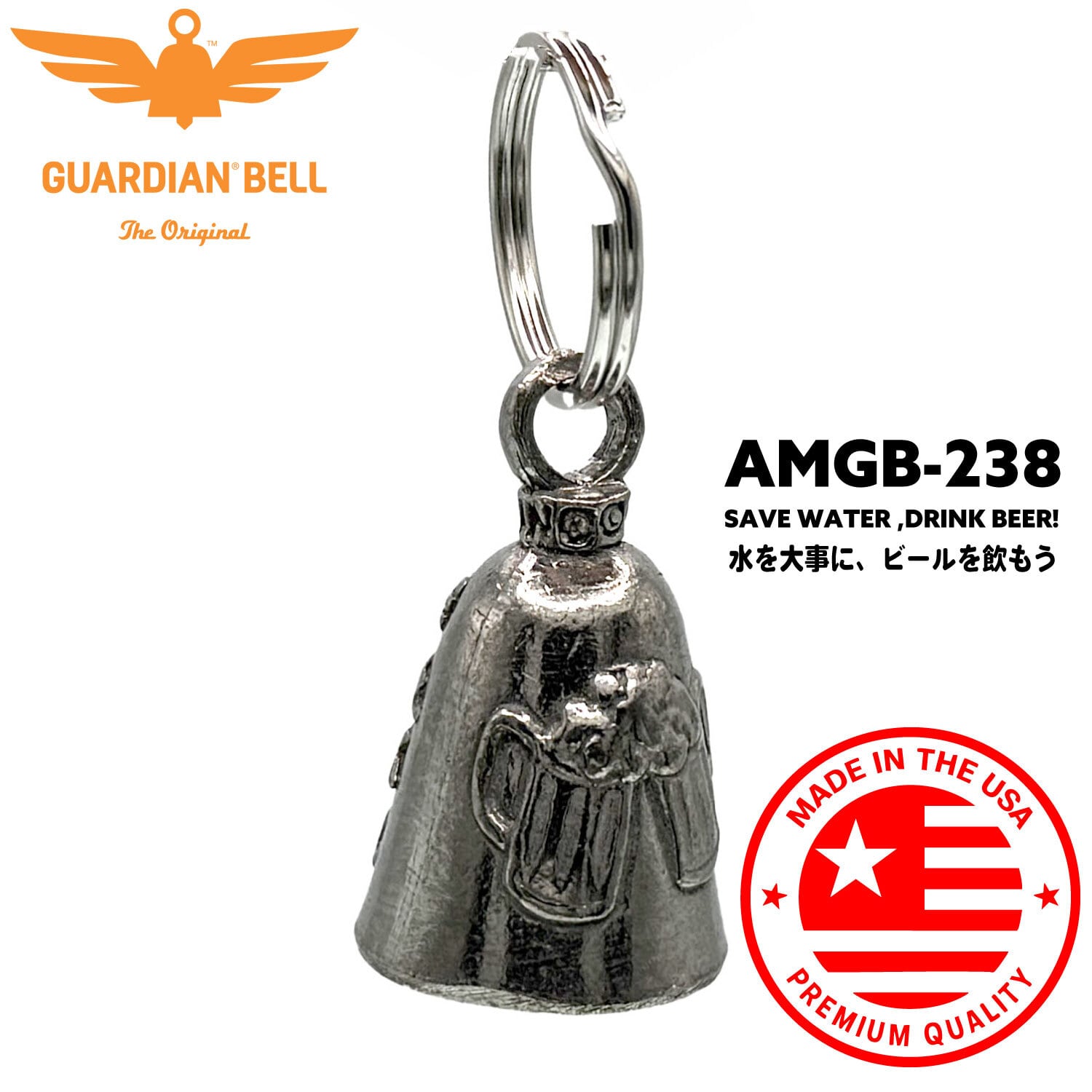 【MADE IN USA】お守り 魔除け バイカー GUARDIAN BELL 米国ガーディアンベル社 直輸入 本物 新品 説明書付き ガーディアンベル バイカーベル Save Water, Drink Beer! :AMGB-238